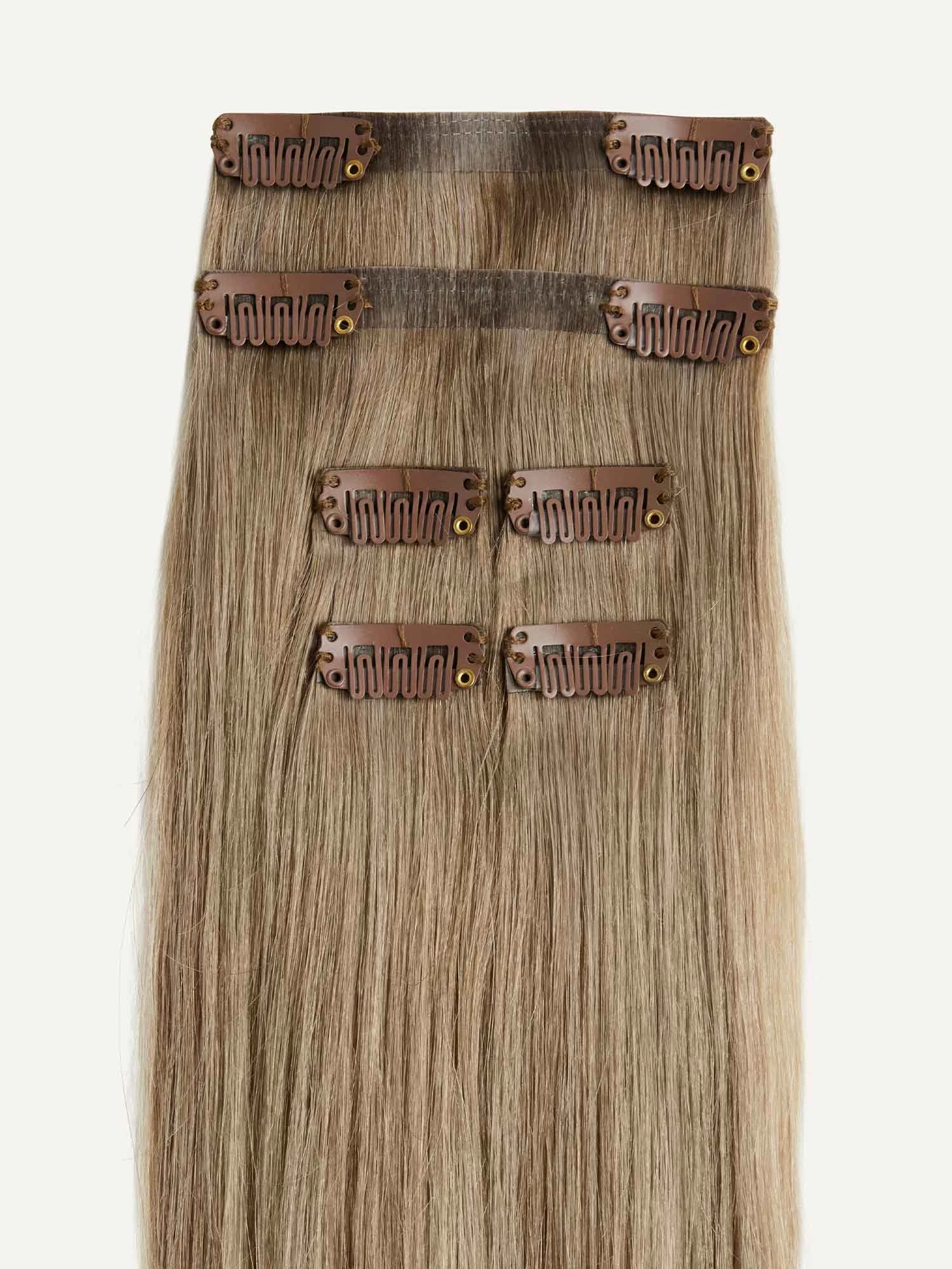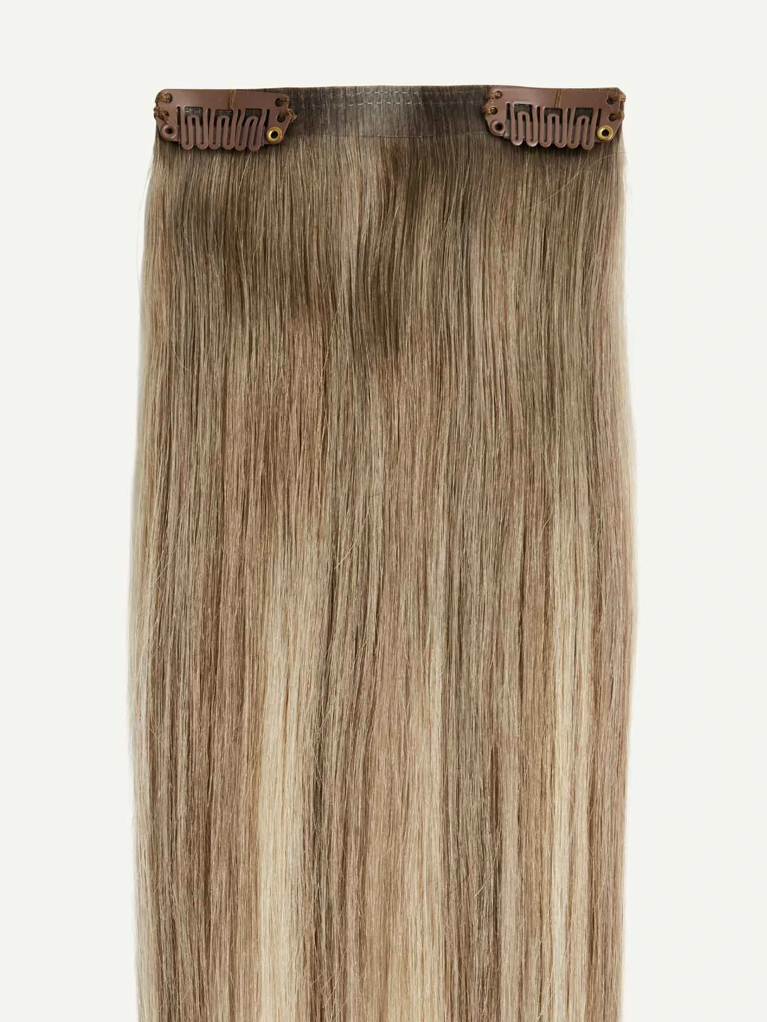 A Natural Blonde base blended with painted Platinum Blonde highlights, cool ash hues create a sun-kissed effect.