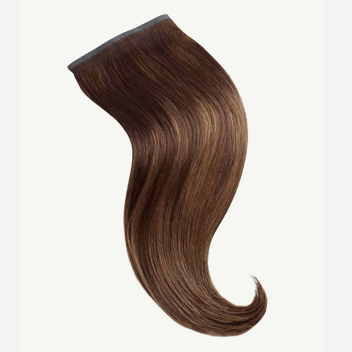 A Chocolate Brown base blended with painted Chestnut Brown highlights, warm golden hues and rich browns come together to create a sun-kissed effect with no dye or damage to your hair.