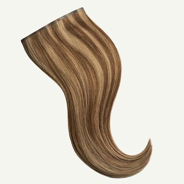 A Chestnut Brown base with Dirty Blonde highlights, warm golden hues create a multi-dimensional effect. Best suited for highlighted hair.