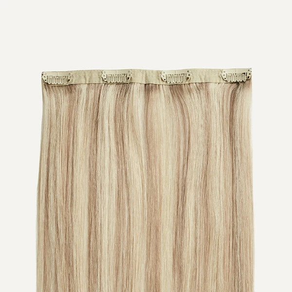 The Beige Blonde Volumizer Weft is an individual 4-clip weft perfect for adding more volume to your existing Luxy Hair set. A dimensional neutral blonde shade with subtle ash blonde lowlights, it’s Dimensional Cream Blonde’s lighter sister. Formerly known as Beige Blonde.