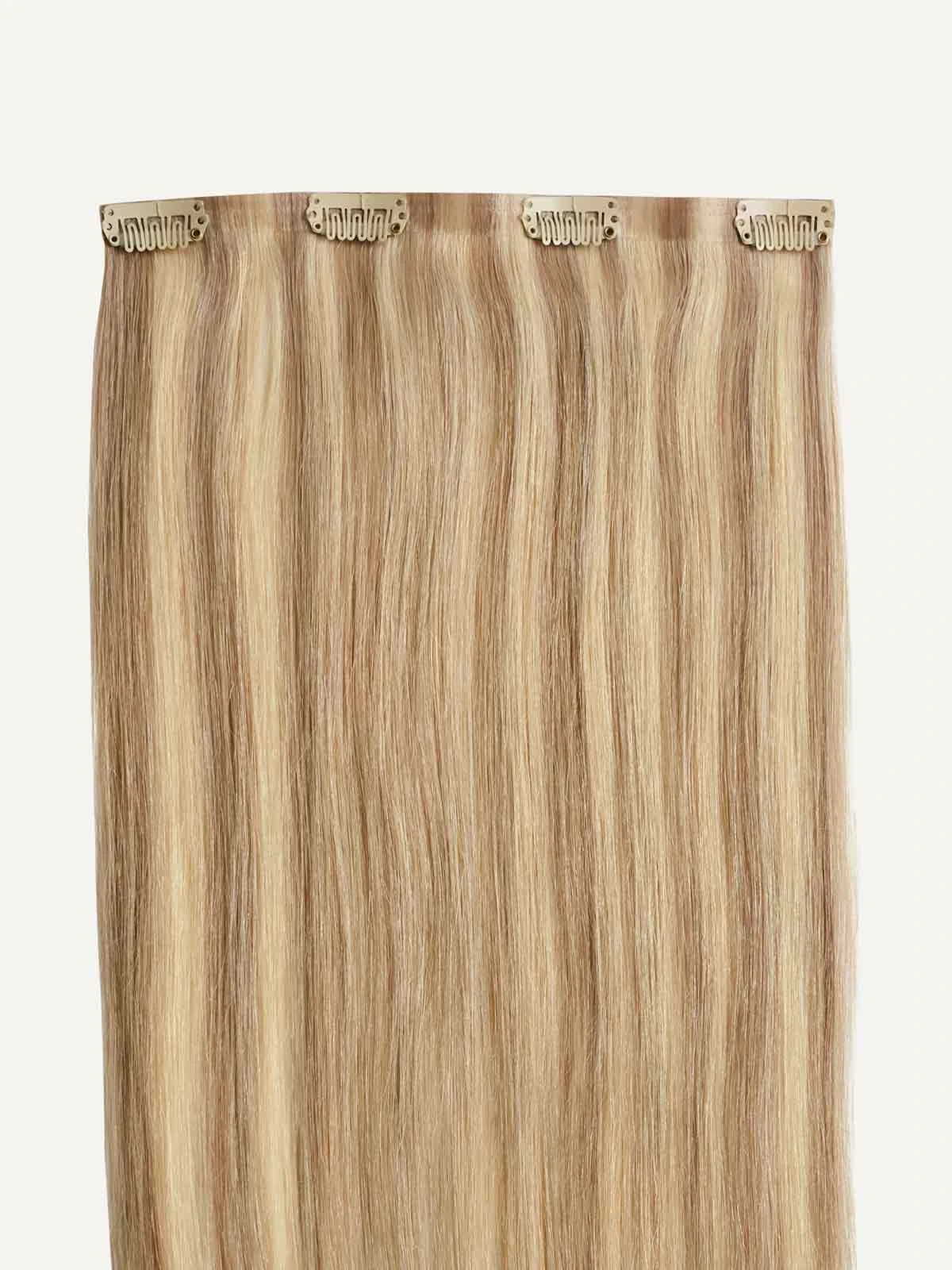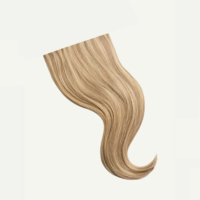 Best suited for highlighted, short or thick hair, this Volume Bundle includes a full 10-piece Classic set and a single Seamless 4-clip Volumizer weft totalling 200 grams. Dirty Blonde Highlights is a Dirty Blonde base with Ash Blonde highlights, cool and warm hues create a multi-dimensional effect.