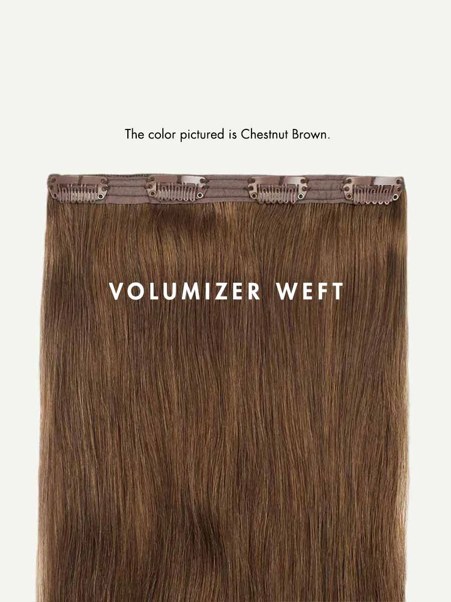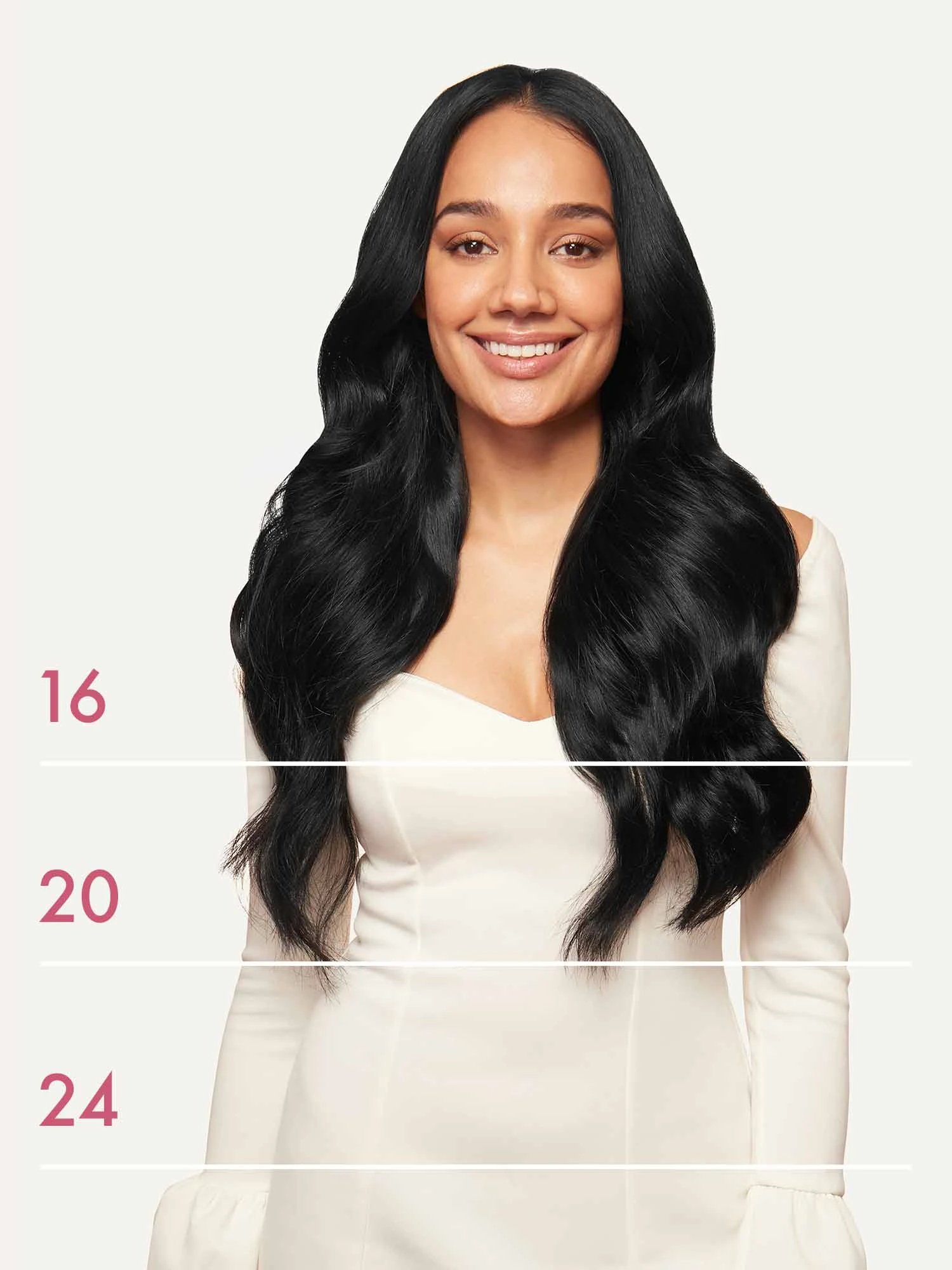 Best suited for fine hair, mid-length hair, or short hair, this Bundle includes a full 10-piece set and a single 4-clip Classic Volumizer Weft totaling 200 grams. Our blackest black, this cool-toned shade has blue undertones throughout for enhanced shine and gloss.