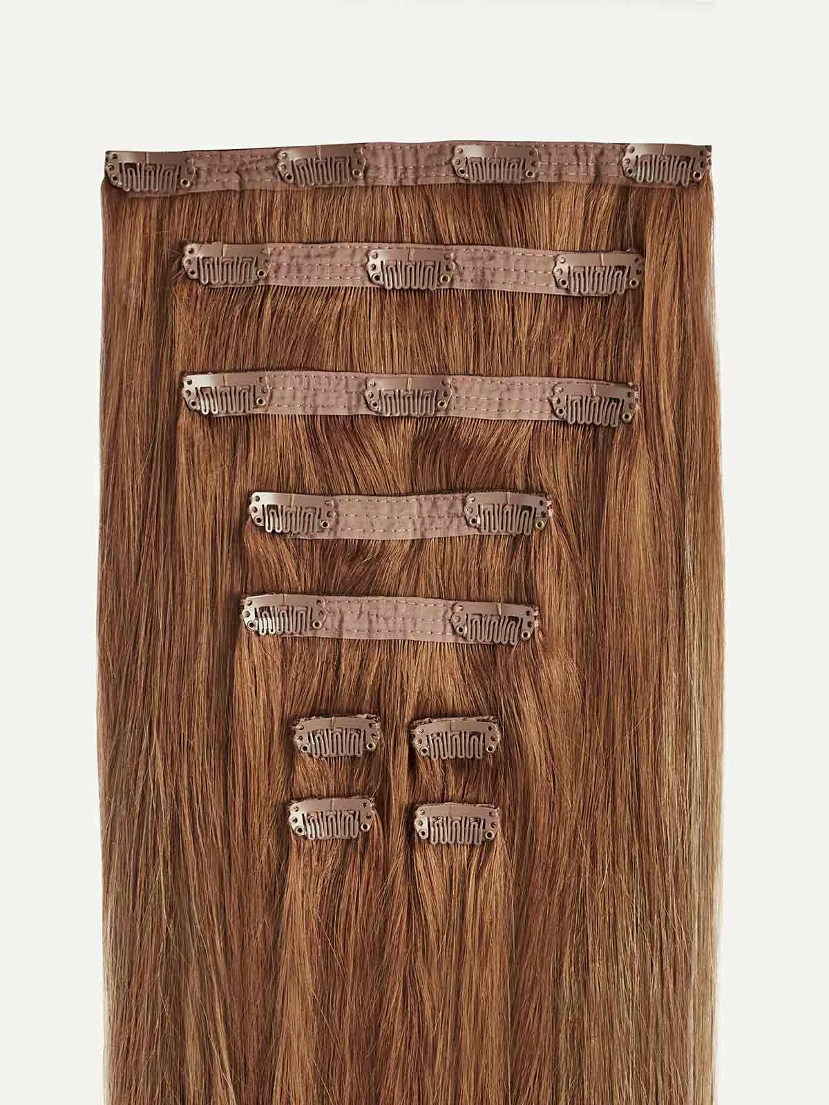 A Natural Red base painted with Dirty Blonde highlights, warm copper hues create a sun-kissed effect.