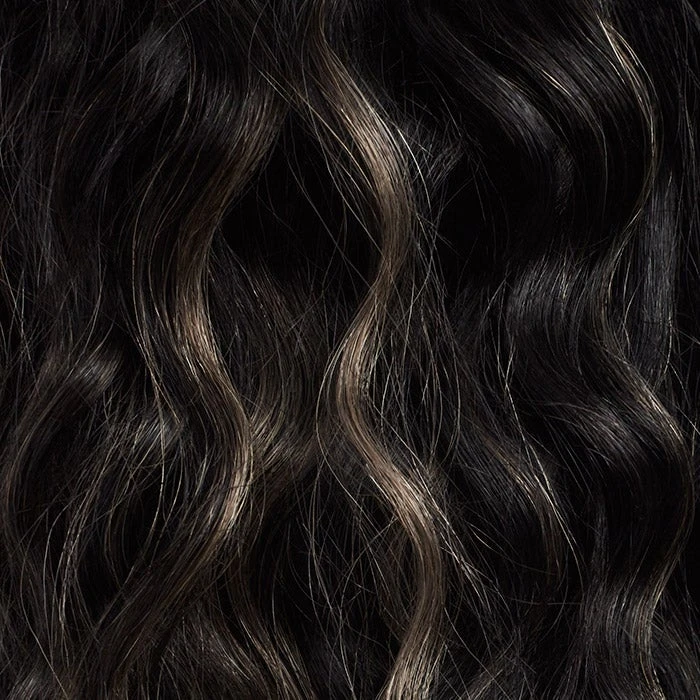 A Jet Black base painted with Sandy Brown highlights, cool hues create a sun-kissed effect.