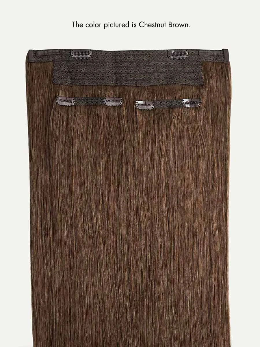 Best suited for short hair, very thick hair, or a blunt cut, this Volume Bundle includes a Halo set and a single 4-clip Volumizer weft totaling 180 grams. Our blackest black, this cool-toned shade has blue undertones throughout for enhanced shine and gloss.