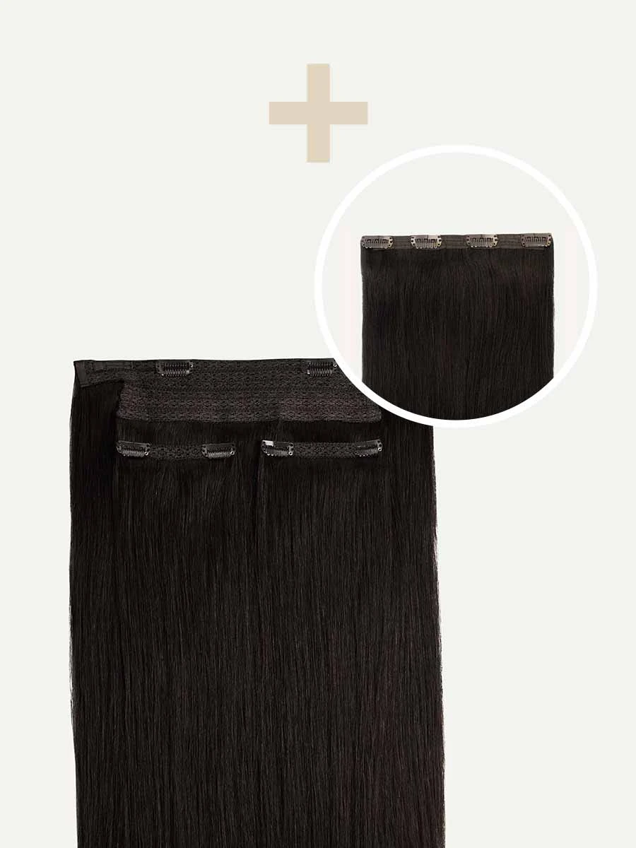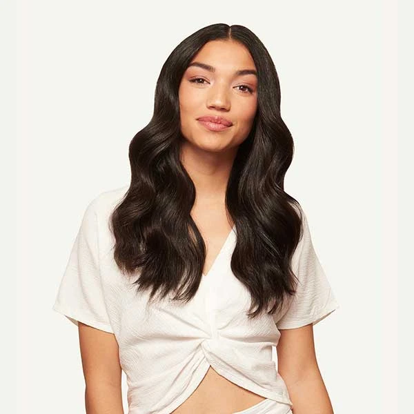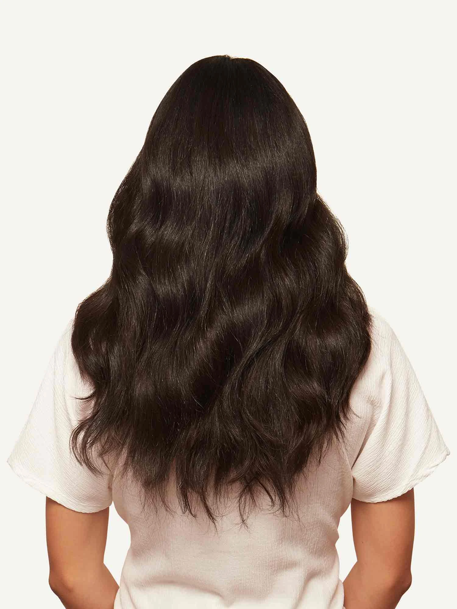 Best suited for short hair, very thick hair, or a blunt cut, this Volume Bundle includes a Halo set and a single 4-clip Classic Volumizer weft totaling 180 grams. Our darkest brown shade, a combination of warm undertones come together in this espresso-inspired color.
