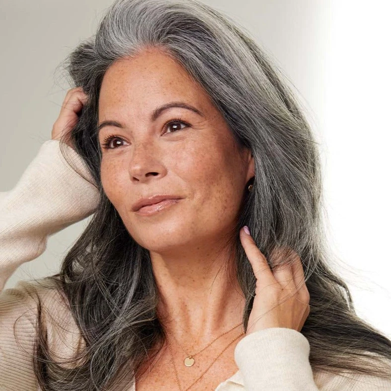 Best suited for fine hair, mid-length hair, or short hair, this Bundle includes a full 10-piece seamless set and a single 4-clip Classic Volumizer Weft totalling 200 grams. An off black base with light gray strands, this neutral-toned salt and pepper shade lets you get back to your roots.