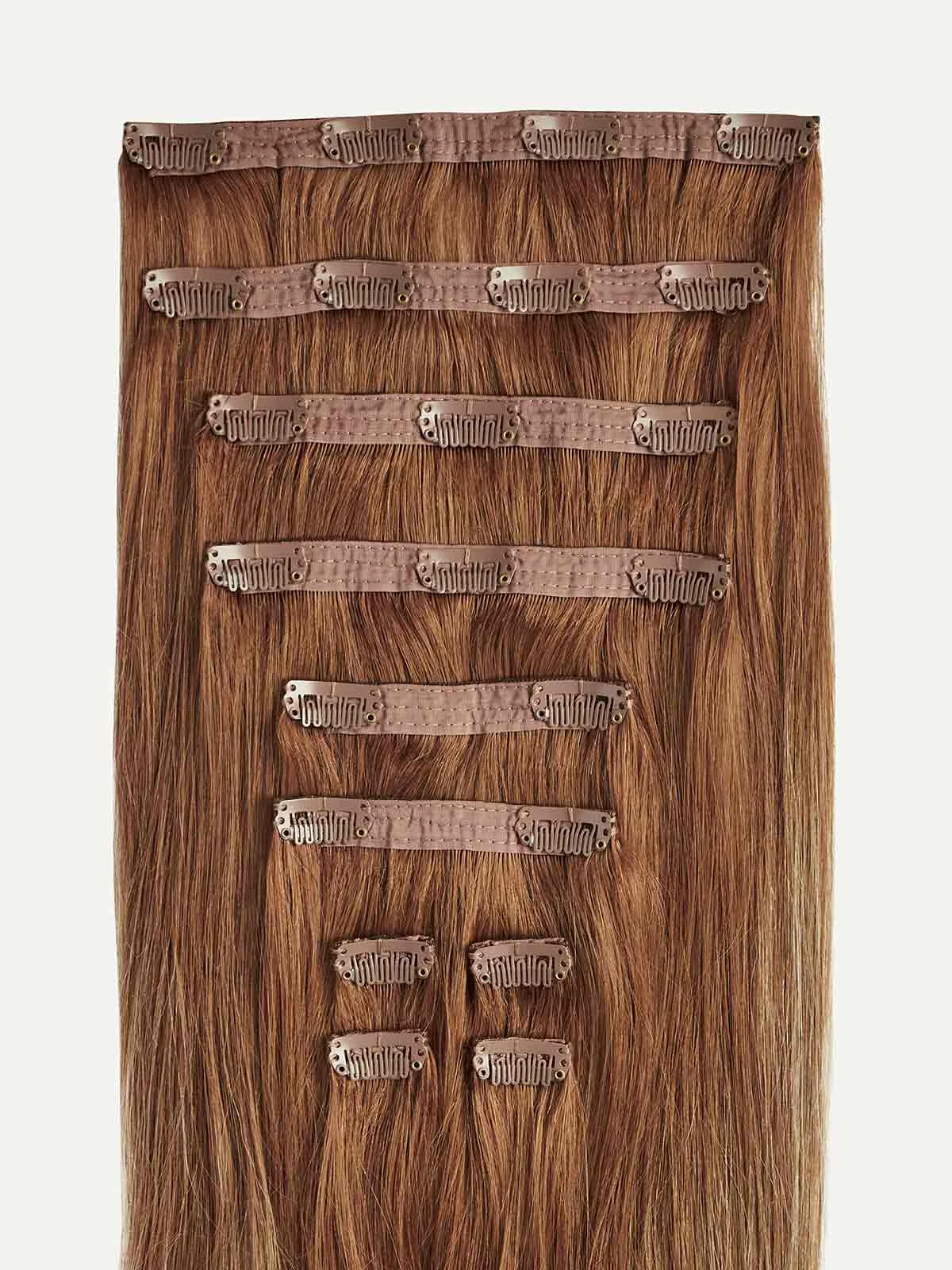 A Natural Red base painted with Dirty Blonde highlights, warm copper hues create a sun-kissed effect.