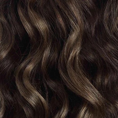 A Dark Brown base blended with painted Ash Brown highlights, warm and cool hues create a sun-kissed effect.