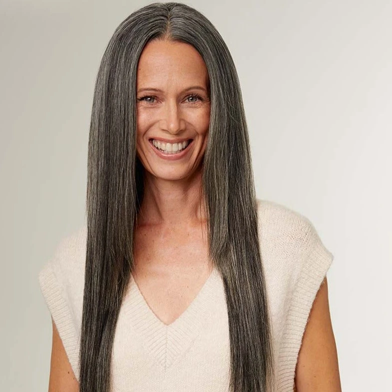 An off black base with light gray strands, this neutral-toned salt and pepper shade lets you get back to your roots.