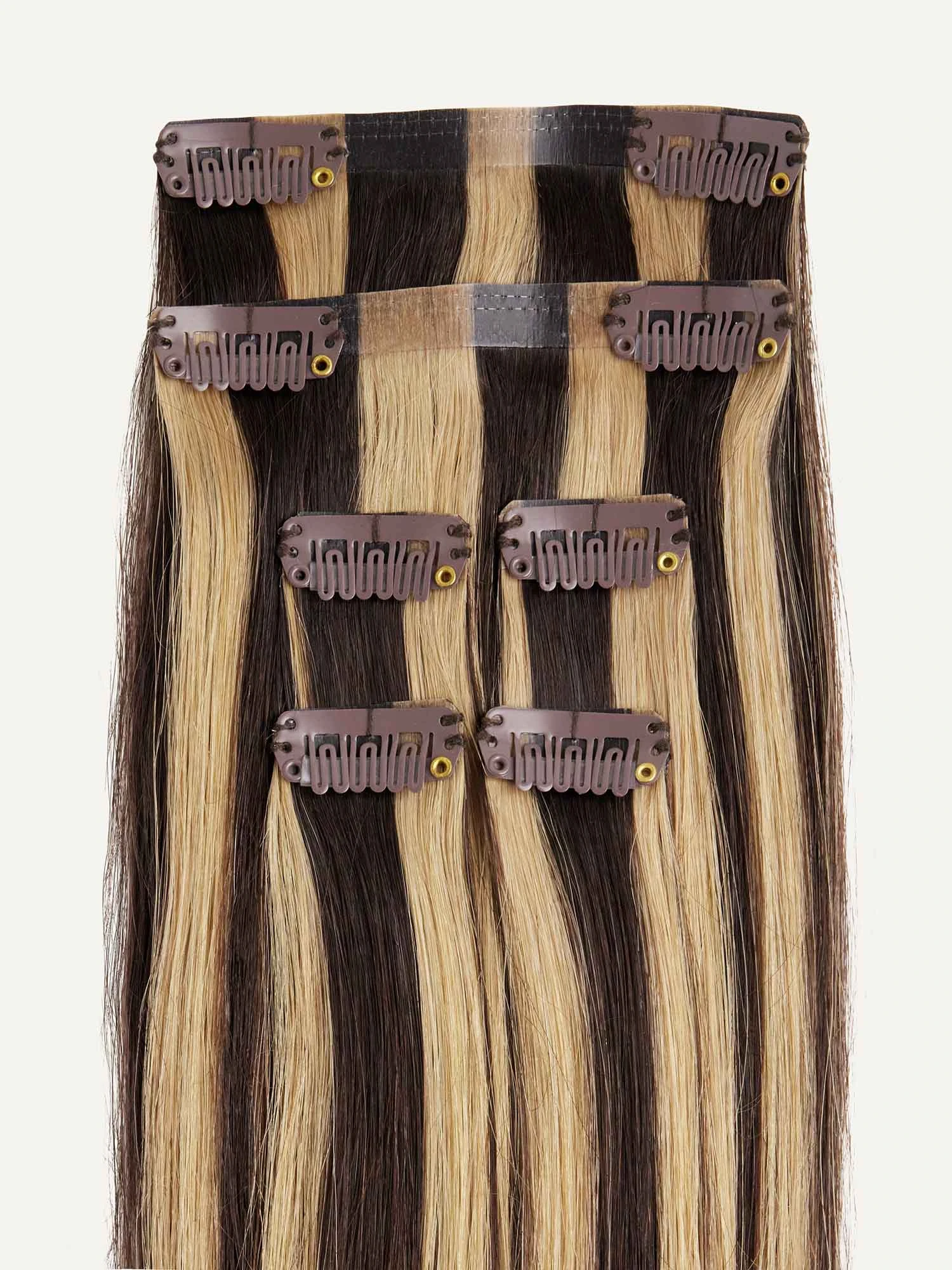 A Mocha Brown base with Dirty Blonde highlights, a mixture of warm hues create a multi-dimensional effect. Best suited for highlighted hair.