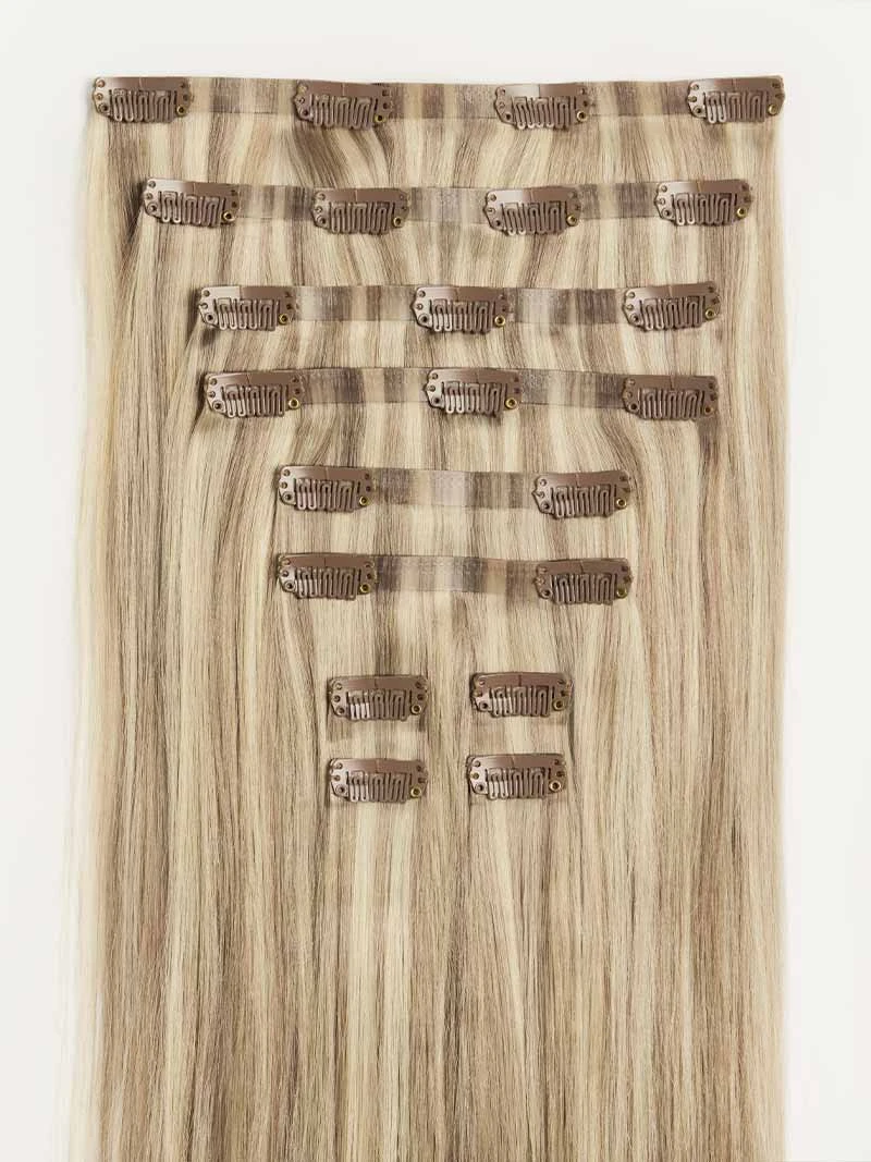 A dimensional neutral blonde shade with light blonde highlights and a blend of warm blonde and ash blonde lowlights.