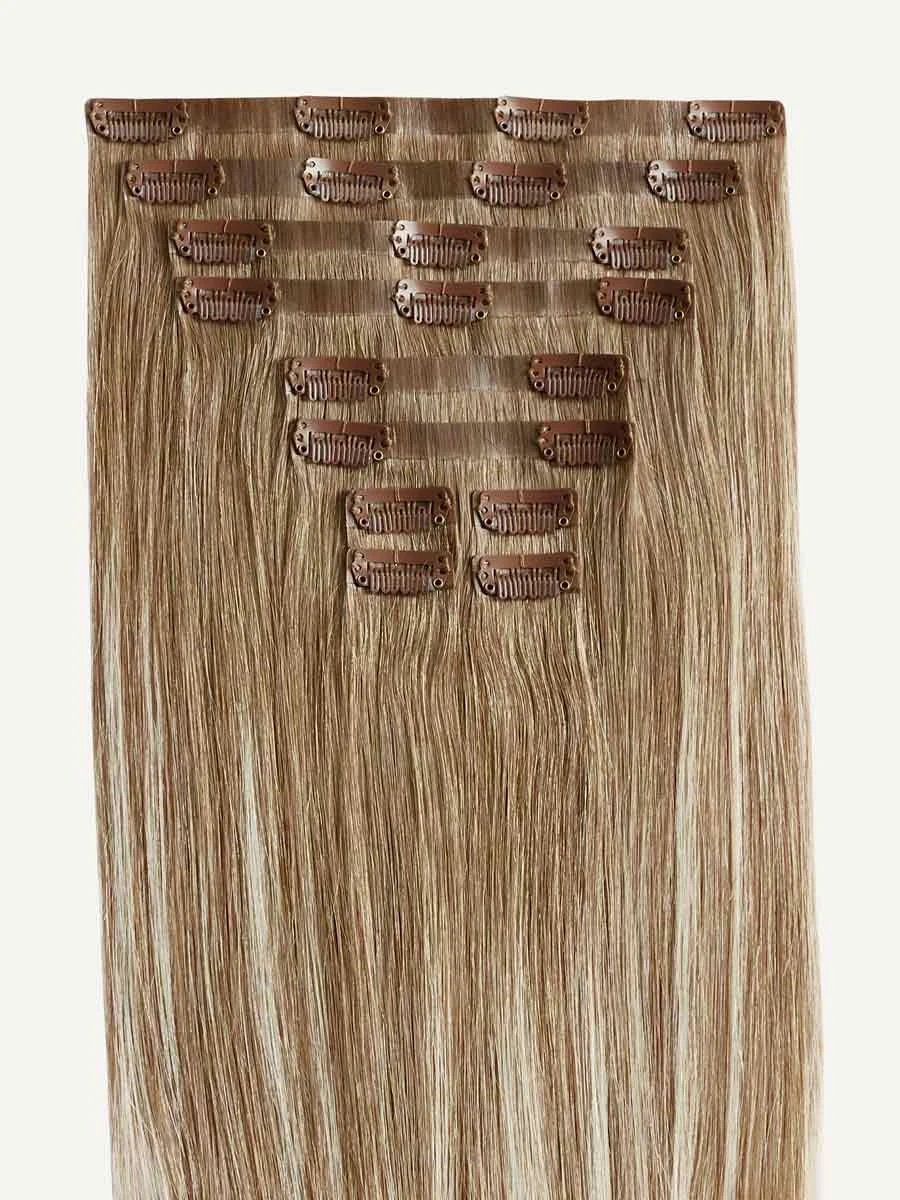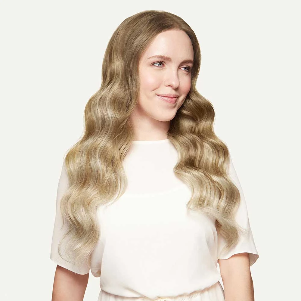 A Natural Blonde base blended with painted Platinum Blonde highlights, cool ash hues create a sun-kissed effect with no dye or damage to your hair.