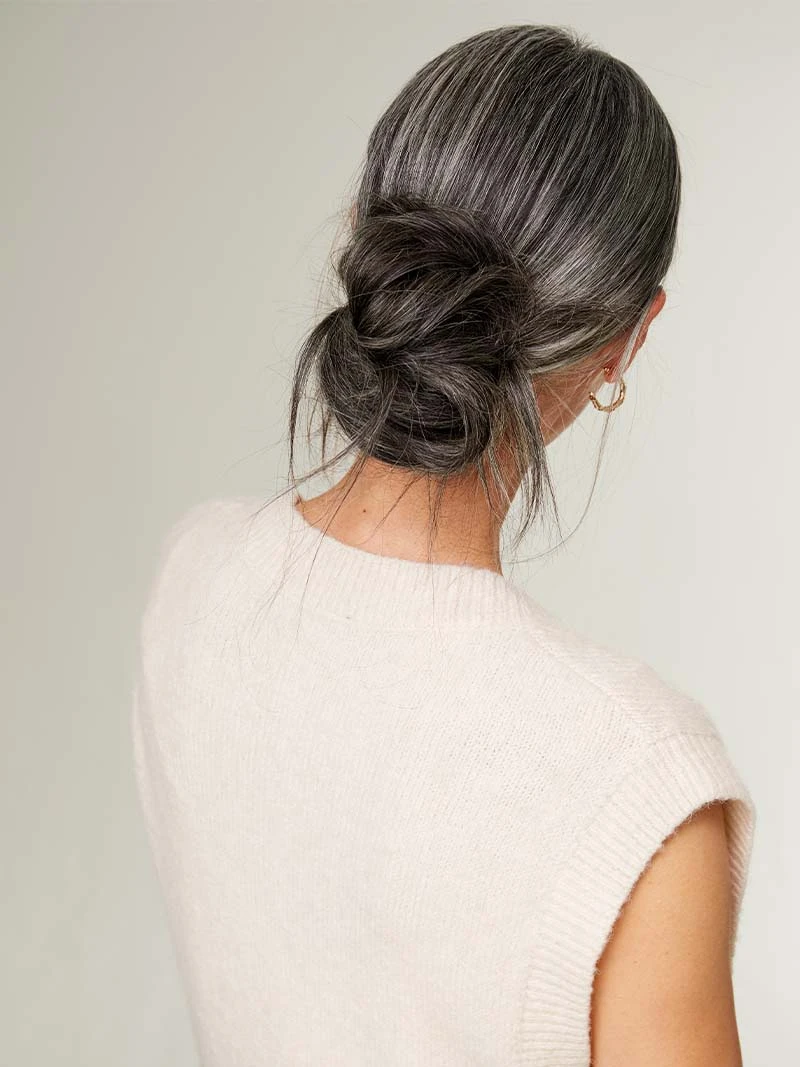 An off black base with light gray strands, this neutral-toned salt and pepper shade lets you get back to your roots.