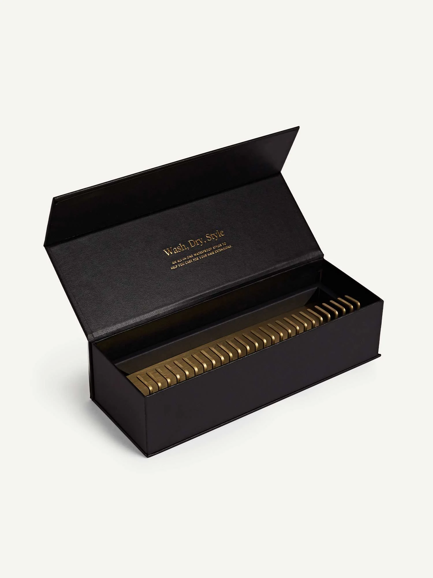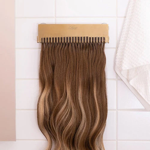 Wash, dry, style, go! A waterproof styling holder made from stainless steel with a brushed gold finish. Simply suction onto your mirror, shower wall, or window to hold your extensions securely in place. All sales are final.