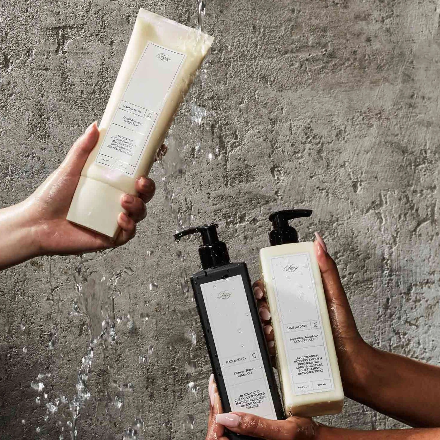 Feeling thirsty? The Dry Repair Bundle helps combat dryness while keeping your hair nourished, strong, and oh-so-soft! Includes Charcoal Detox Shampoo, High-Gloss Smoothing Conditioner, and Length Repairing Hair Mask. Designed for hair extensions. Safe for your own hair. Made with clean and organic ingredients.