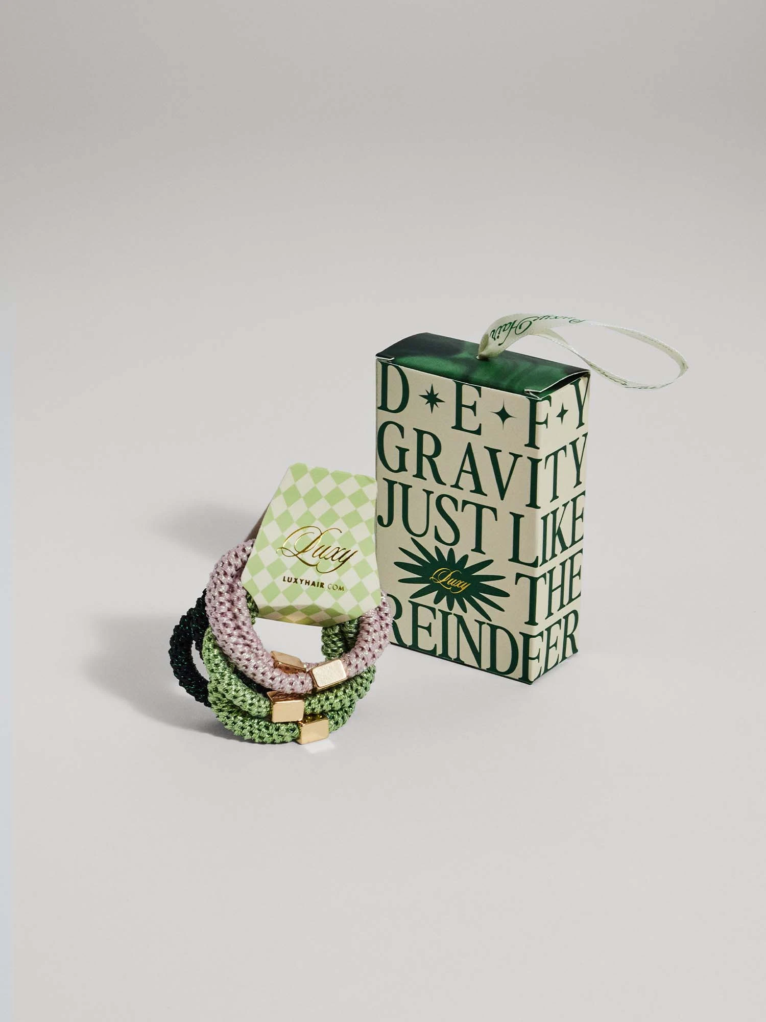 Make sure your ponytail survives any holiday party with Gravity Defying Hair Ties. Features telescopic fibers and a gold alloy bead. Perfect on any hair type, texture, or planet. Pairs perfectly with our Ponytail Extensions. Comes in a set of 6. All sales are final.