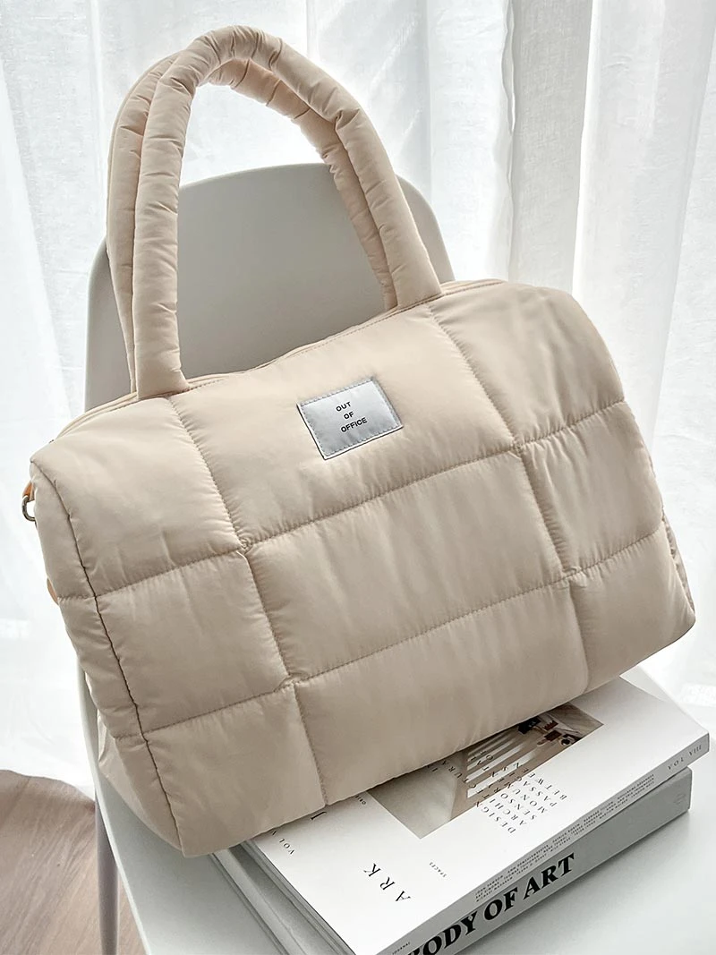 A chic cream-colored “Out of Office” tote bag perfect for a weekend getaway! Made from 100% polyester. All sales are final.