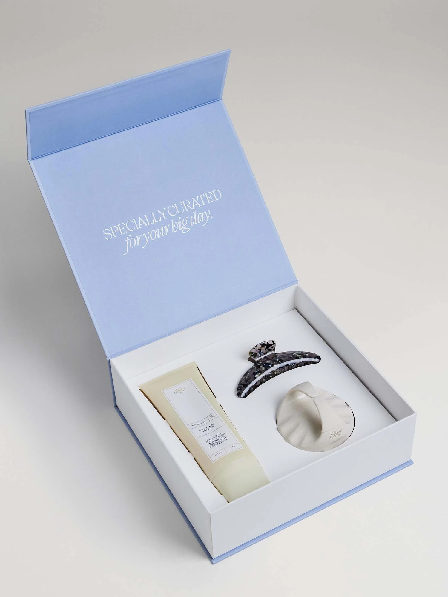 Cheers to healthy hair, in shortness and in length. The Something Nourishing Hair Kit is specially curated to pamper you and your wedding party for the big day. Includes the Length Repairing Hair Mask, the Root Rescue Massager, and the Speckled Claw Clip in Pewter. Designed for hair extensions. Safe for your own hair. Made with clean and organic ingredients.
